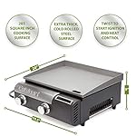 If you’re looking for easy and versatile cooking at home, look no further! From the basics to breakfast and beyond, you can cook just about anything on a griddle. Flat top cooking can be found in just about every cultural cuisine from Japan to Spain to the U.S. The Cuisinart Gourmet Two Burner Gas Griddle is designed to look great on your patio while still offering the portability to take it to the tailgate, camp site, or anywhere your culinary creativity is needed. If you need an all-in-one outdoor cooking appliance or something to expand your culinary creativity at home or away, then this product is for you! Features: 14.75″ x 7″ removable cast iron cooking grate provides the option to sear food on half of the griddle surface|285 sq. in. cooking surface|2 burners that combine to produce 20 000 BTUs|Extra thick cold rolled steel surface|Built-in hose made for 20lb LP tanks|3-year warranty