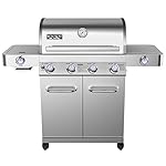Do you smell that intoxicating smell? You know the one: a freshly marinated steak, charred veggies, or even the aroma from a plump bratwurst. You don’t smell anything? Well, that’s because you aren’t the proud owner of a Monument Grills 4-Burner Gas Grill with Side Sear Burners yet. This grill is the perfect solution to those summer grilling blues. Thanks to 4 main burners, 1 side burner, 1 ceramic sear burner, and 513.3 square inches of cooking area, this grill can handle all the tasty food you can throw at it. With its propane gas compatibility, you no longer have to worry about fiddling with pesky and hard-to-light charcoal. From the pilotless ignition to the built-in thermometer, this Monument Grill keeps the users in mind and is sure to provide an enriching grilling experience for many backyard barbecues to come!